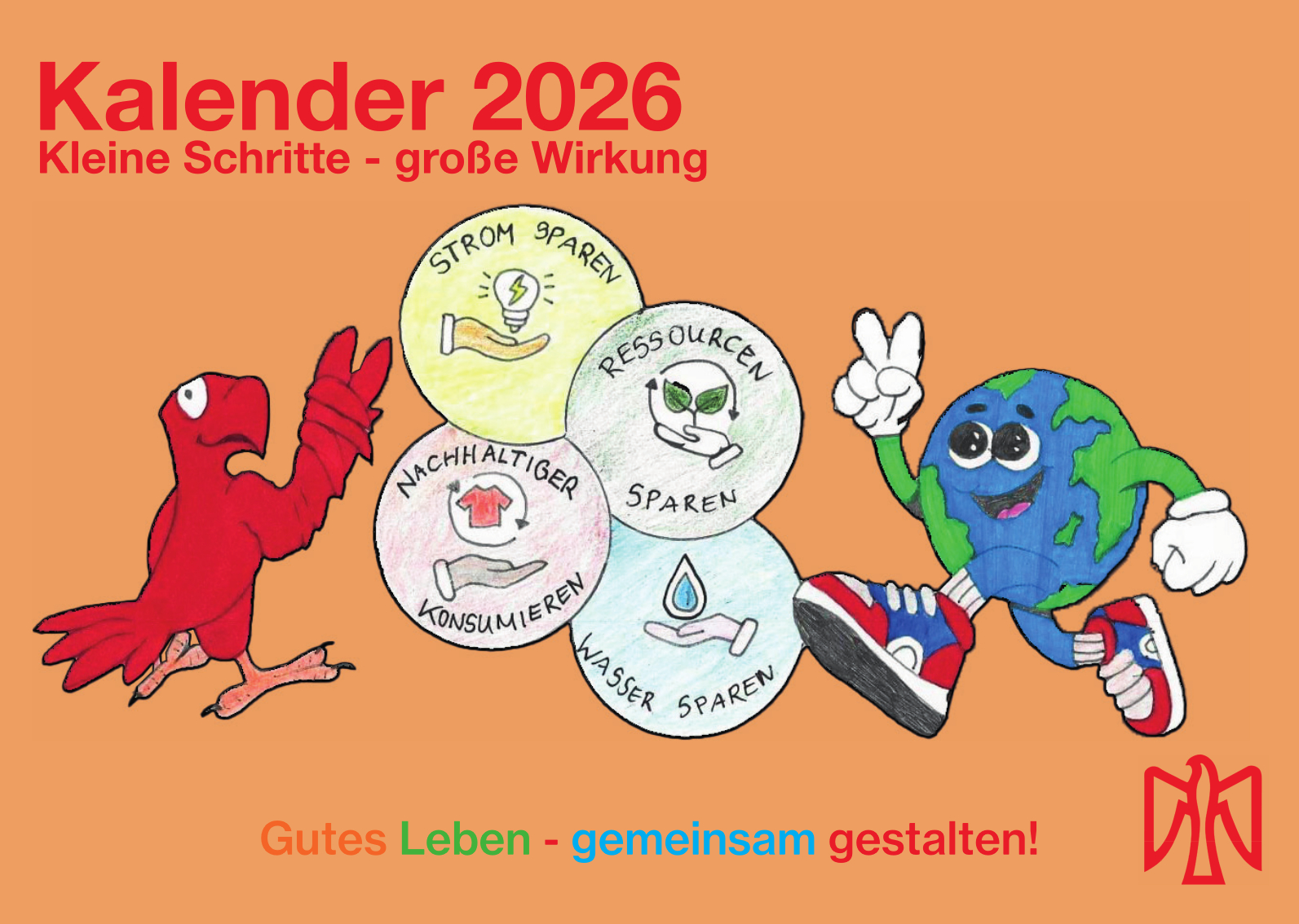Bestellung und Online-Bestellung Der Kalender 2026 "Kleine Schritte - große Wirkung" wird mit der Deutschen Post kostenlos zugeschickt.